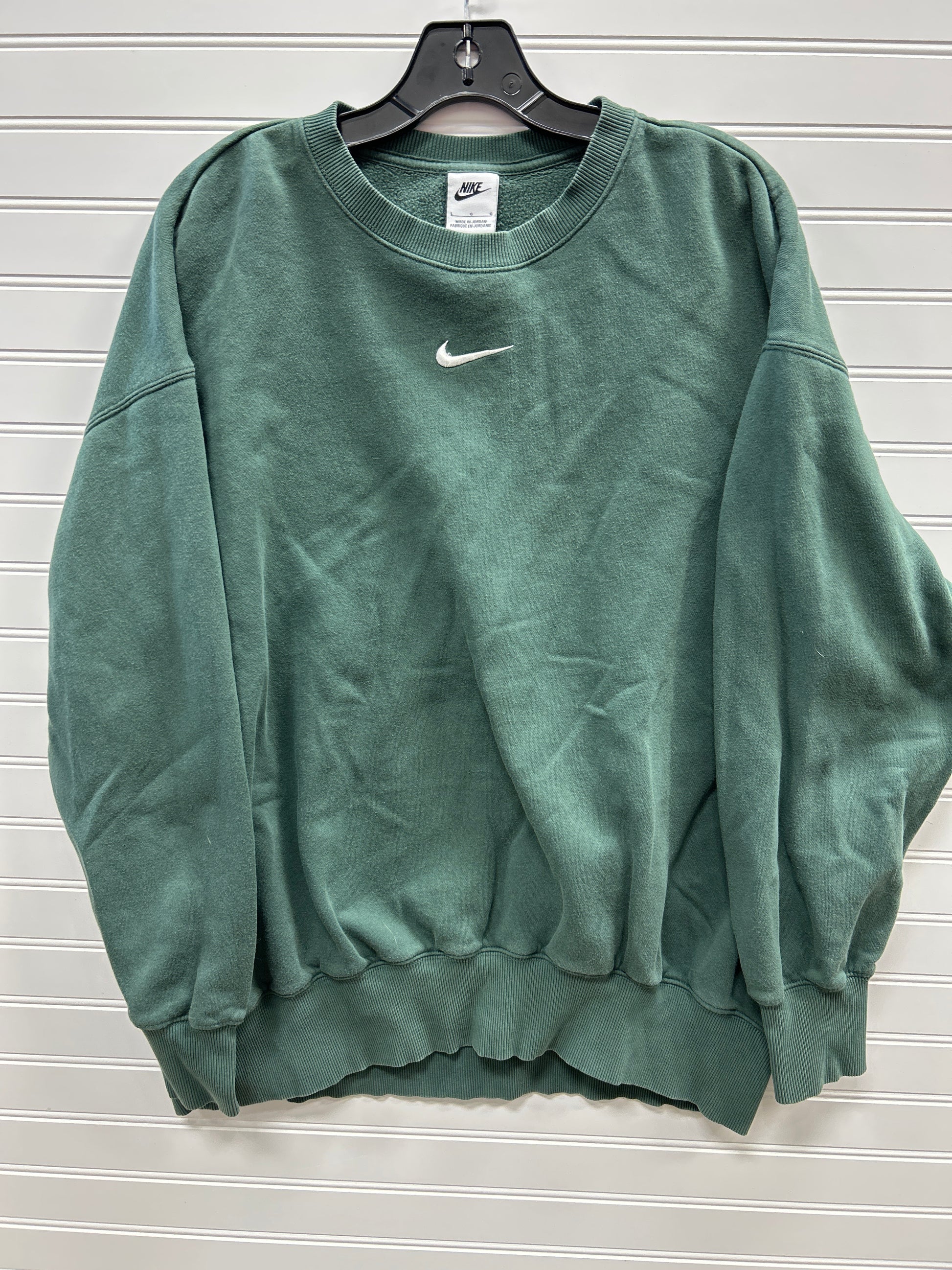 Nike's green Athletic Sweatshirt Crewneck in size L combines comfort and style effortlessly. Perfect for active days or casual outings. Upgrade your wardrobe with this versatile piece.