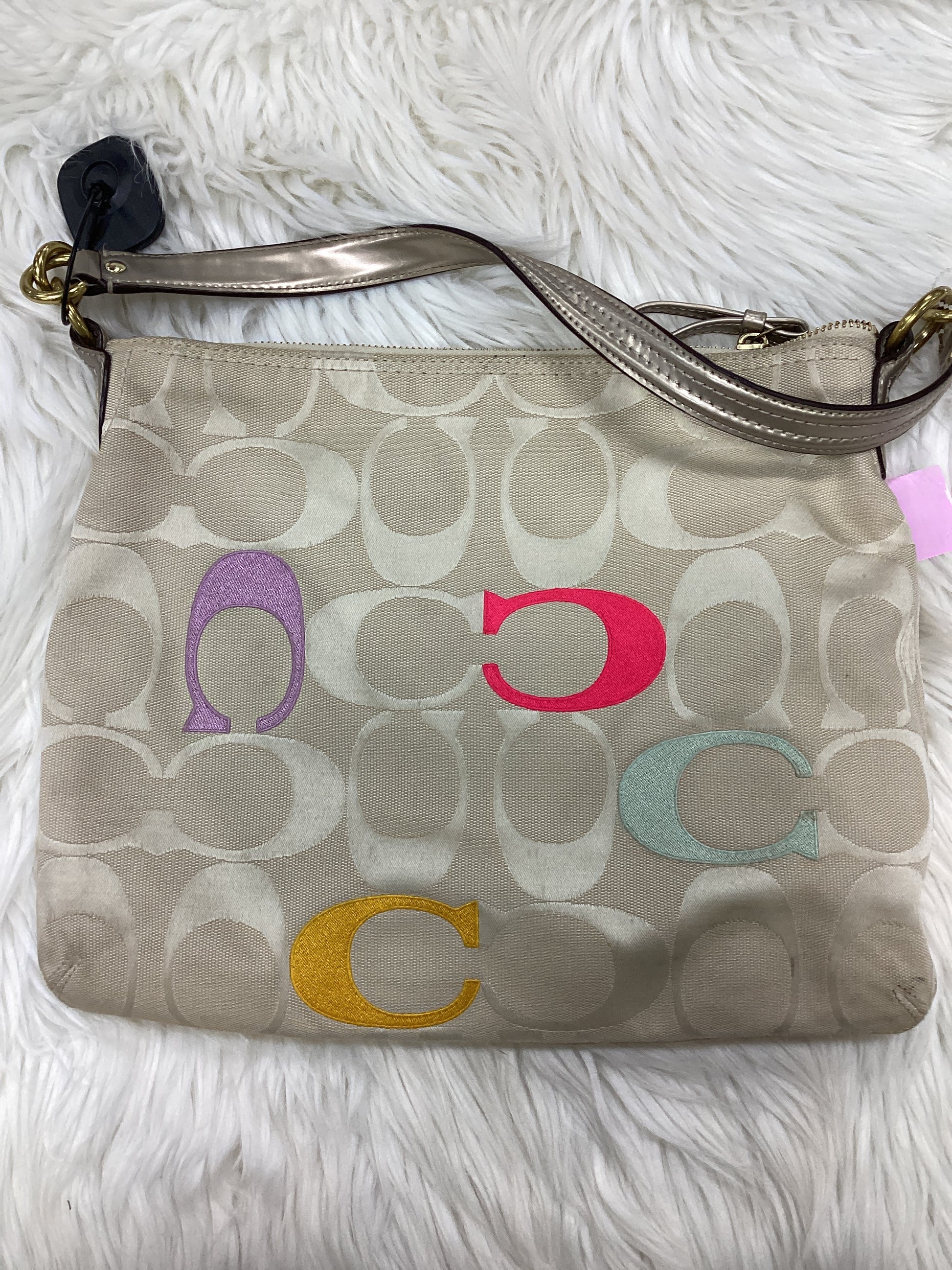 Handbag Designer By Coach In Cream, Size:Large