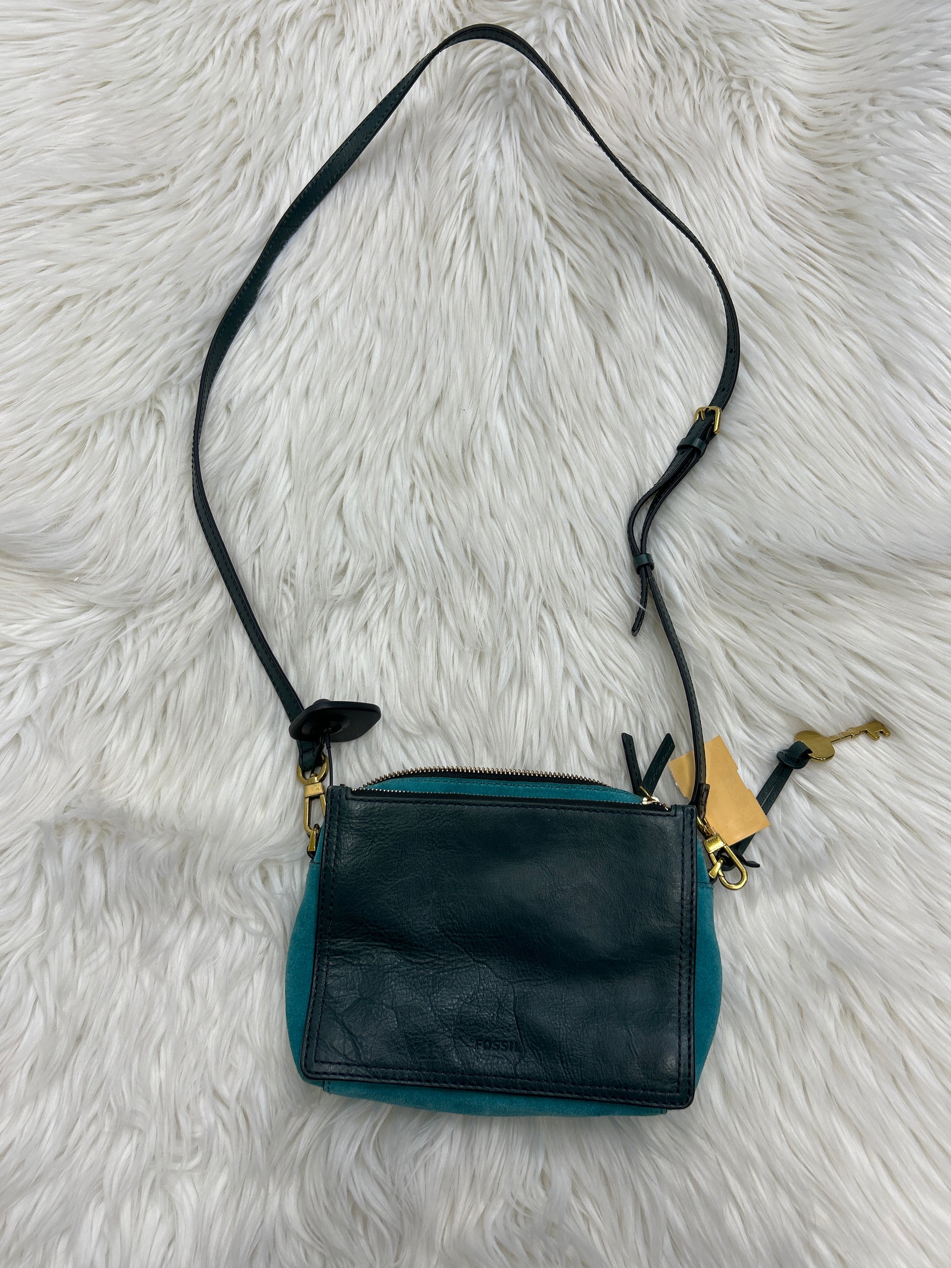 Handbag Leather By Fossil In Teal, Size:Small